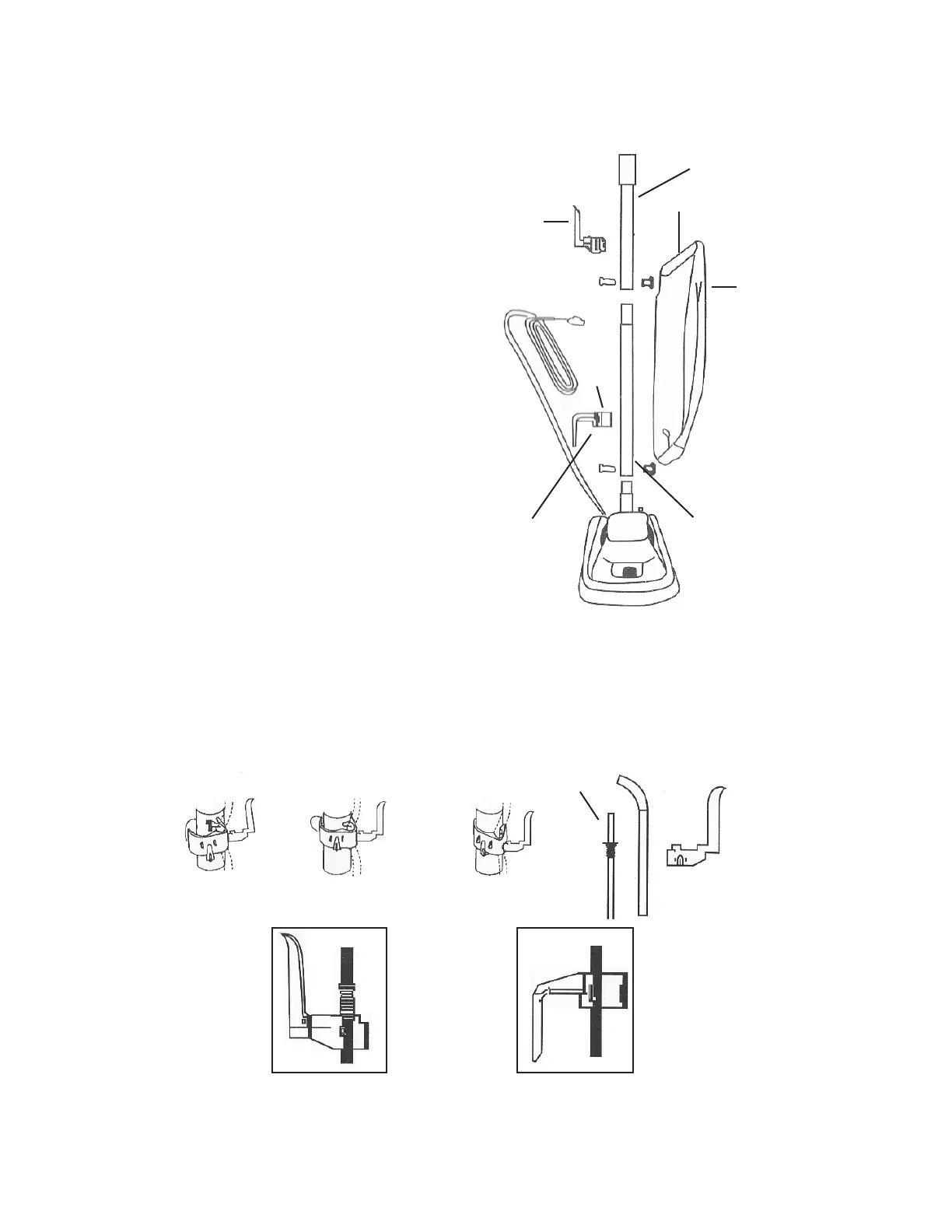 lower handle with hook facing down. Make sure cord is in cord slot before