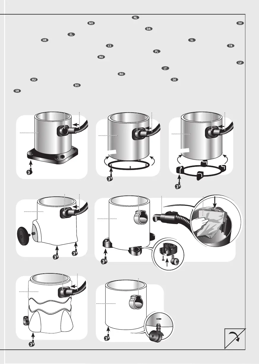 Piegādātā komplektācija atšķiras atkarībā no putekļu sūcēja modeļa (skatīt iepakojumu).