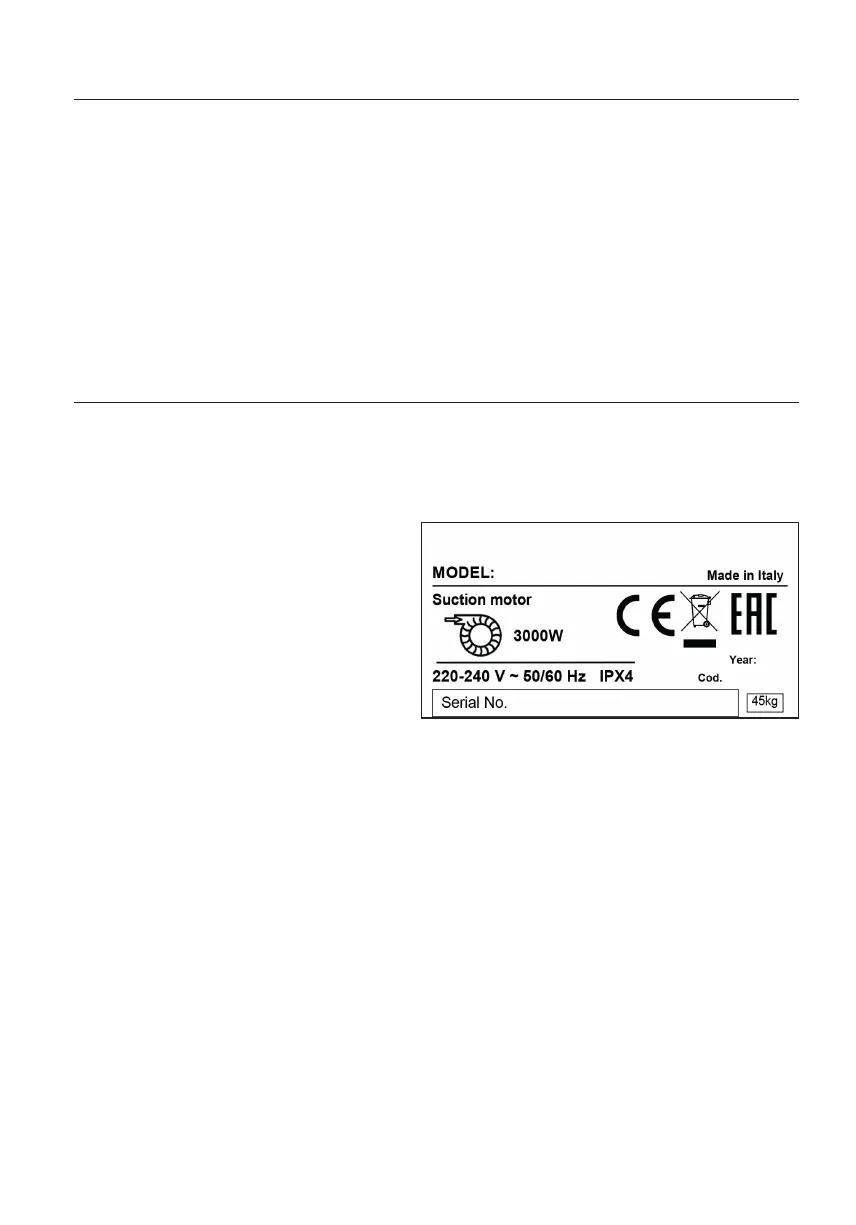 Ogni apparecchio è contrassegnato da una targa identicativa che ne riporta i dati essenziali indispensabili