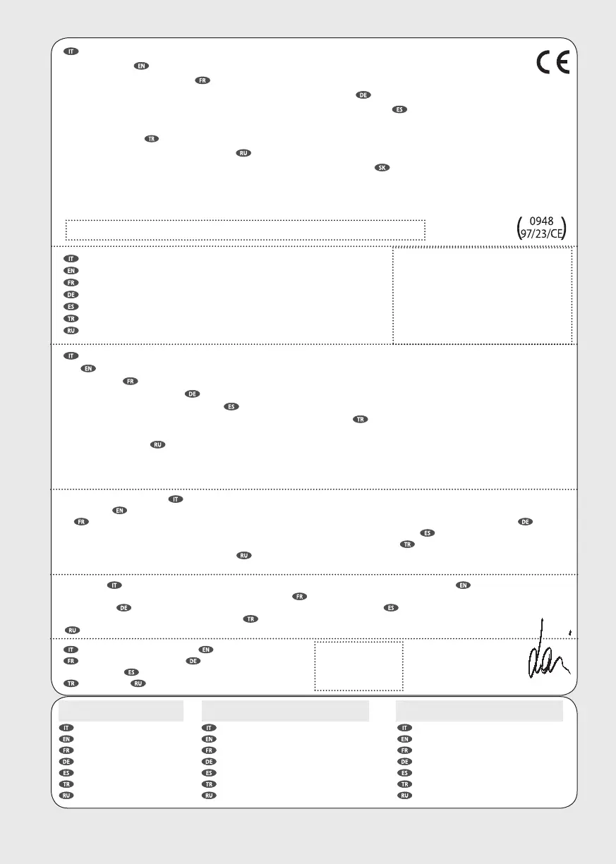 97/23/CE: Procedura di valutazione della conformità secondo l’allegato III, modulo A1. Conformity evaluation