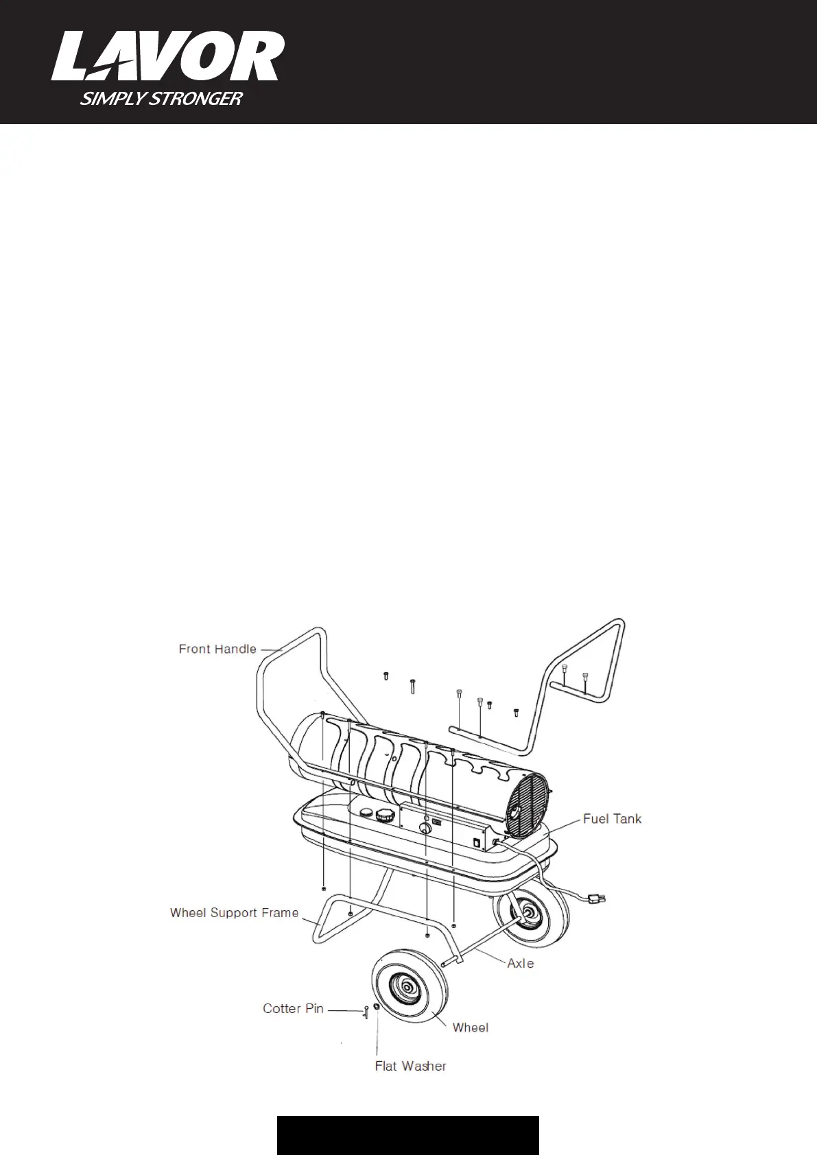 wheels. Align the holes on the fuel tank ange with the holes on the support frame.