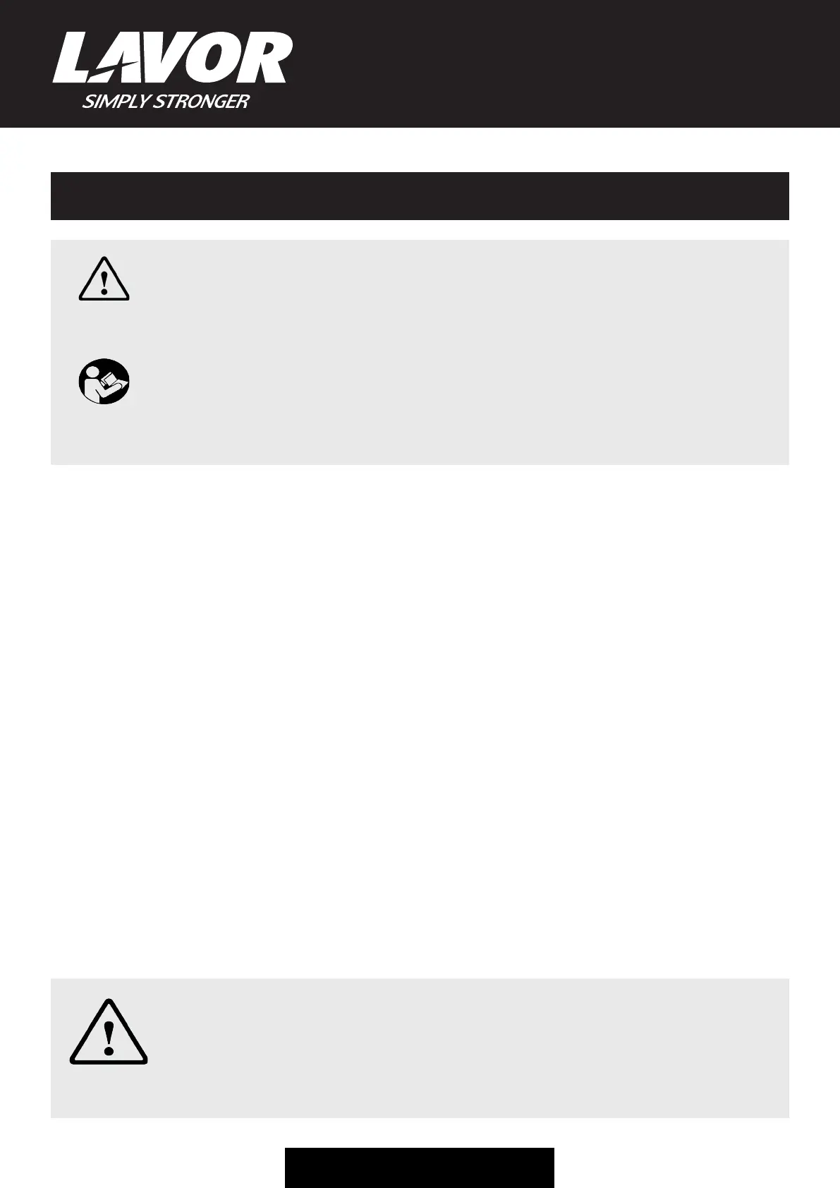 • Only use LAVOR replacement parts to maintain safe equipment use and avoid invalidating the warranty.