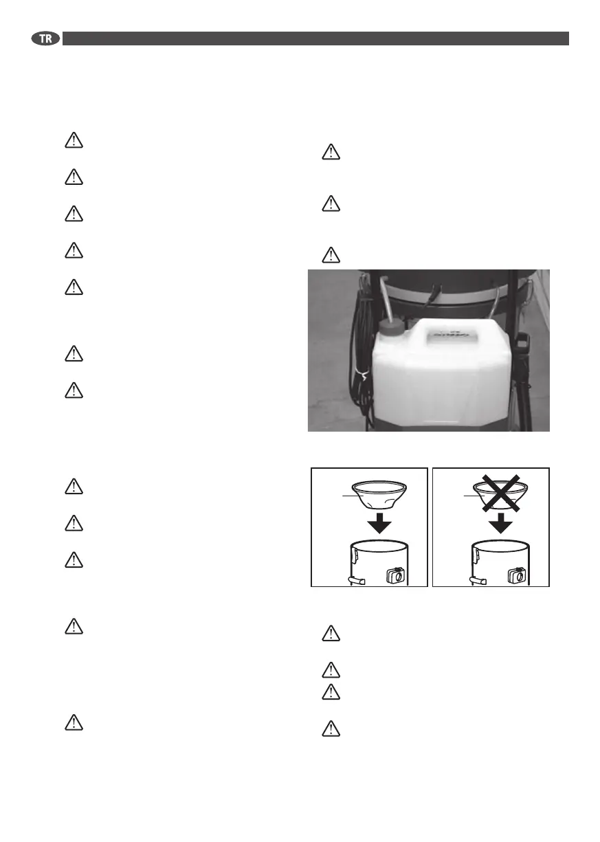 daldırmayınız veya su fışkırtarak yıkamayınız.