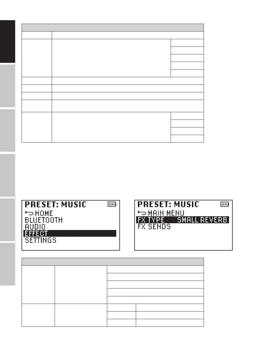 EFFECT (Change value or status = turn encoder, confirm value or status change = press encoder)