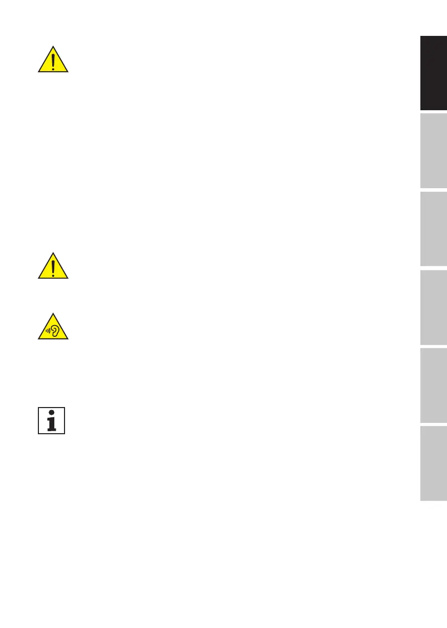 Hearing damage due to high volumes and continuous exposure: The use of this product can