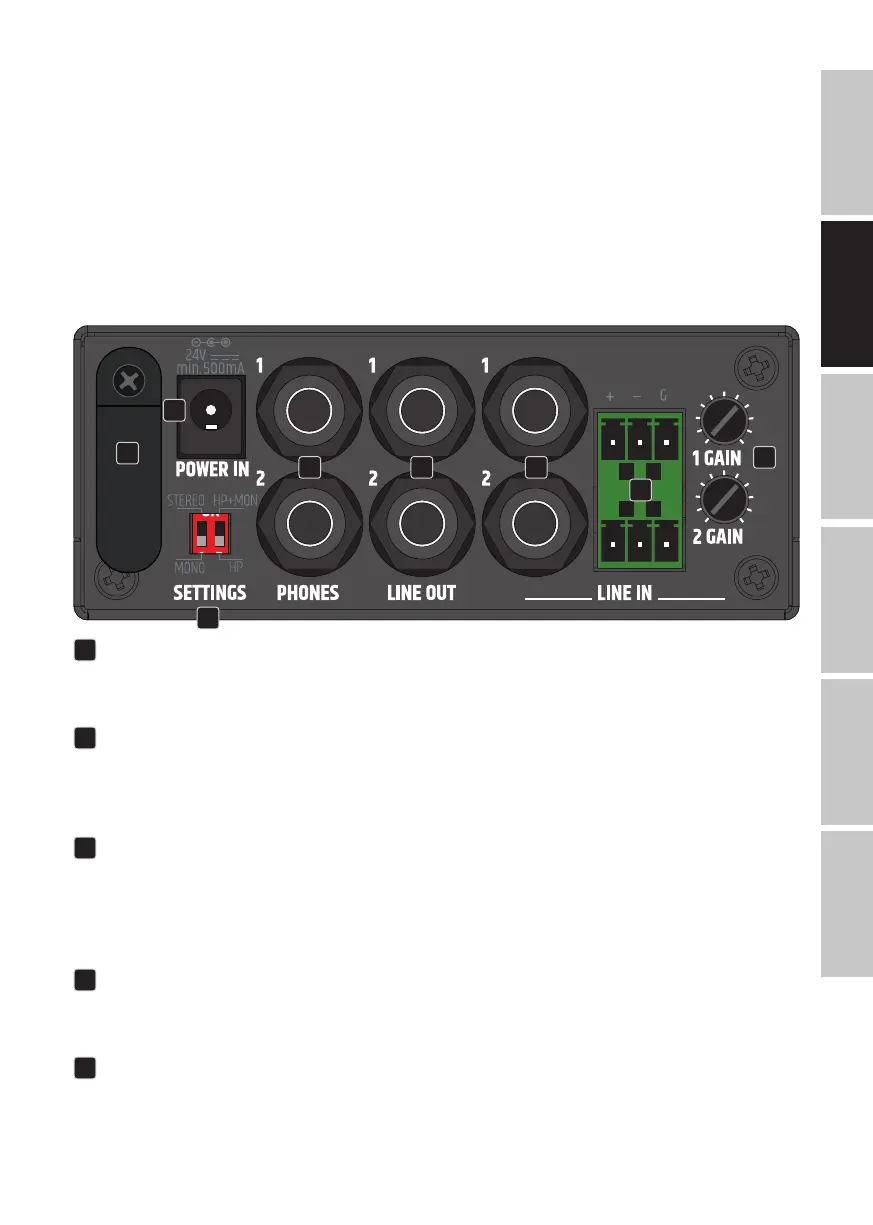 • Zwei Line-Eingänge mit unabhängigen Gain-Reglern