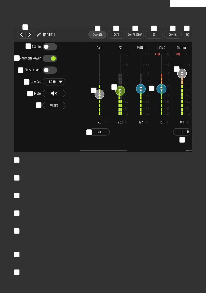 Tap CHANNEL to display the channel strip.