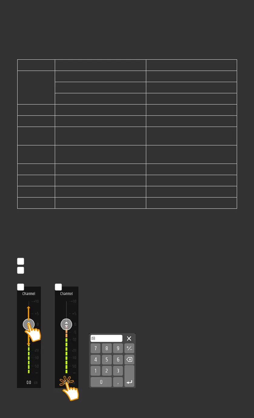 Tap on a virtual fader and move it up or down to set the desired value.