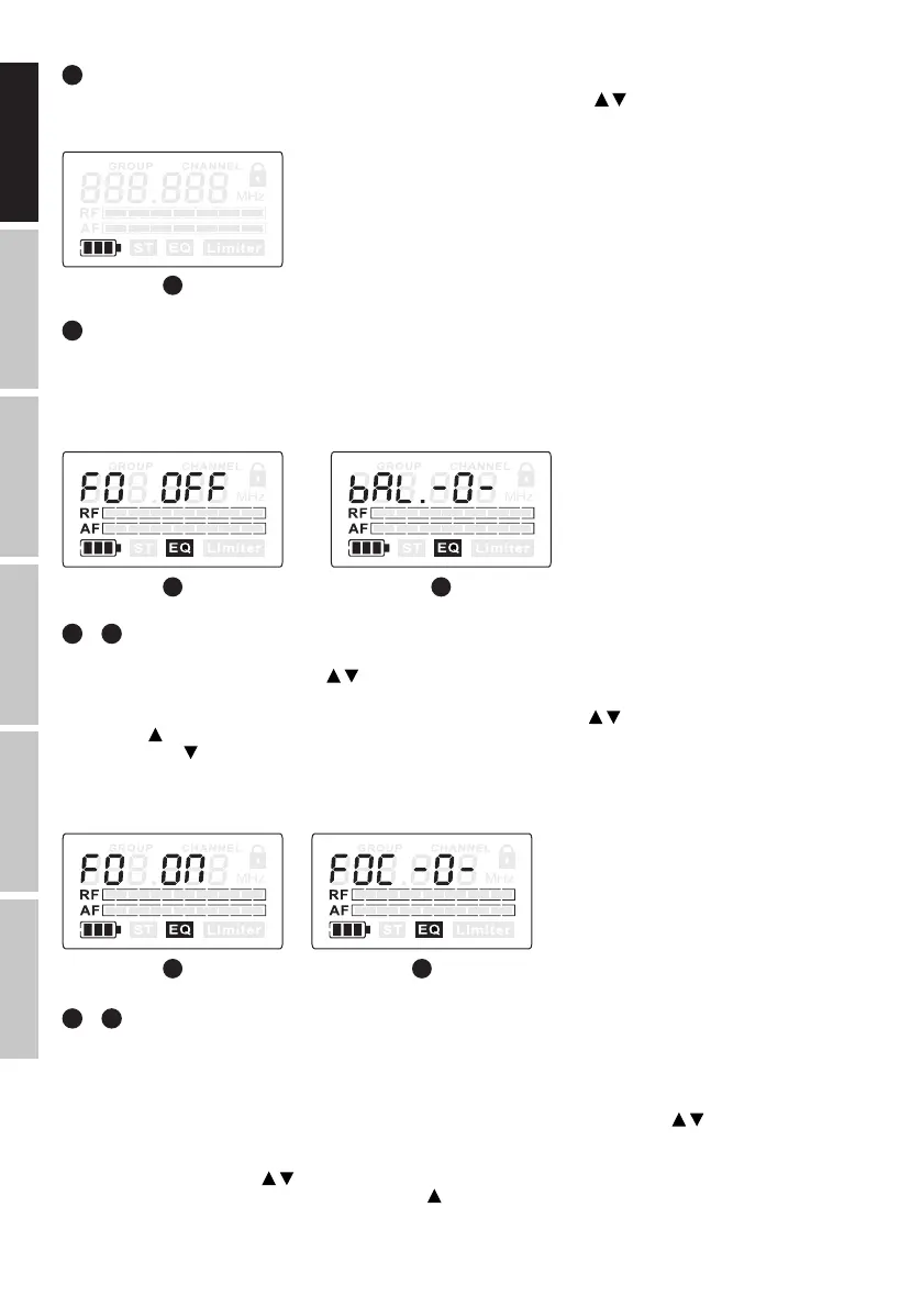 transmitter (INPUT RIGHT) into the background, use the button (15 levels: FOC 1-, 2-, 3-, 4-, 5-, 6-, 7-, 8-, 9-, A-, b-, C-, d-, E-, max.