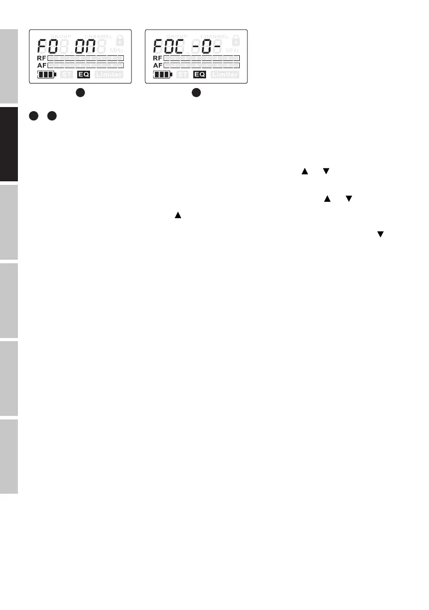 Drücken Sie die SET-Taste so oft bis „FO OFF“ bzw. “FO ON” im Display erscheint und blinkt. Mit Hilfe der bzw. Tasten können Sie nun die