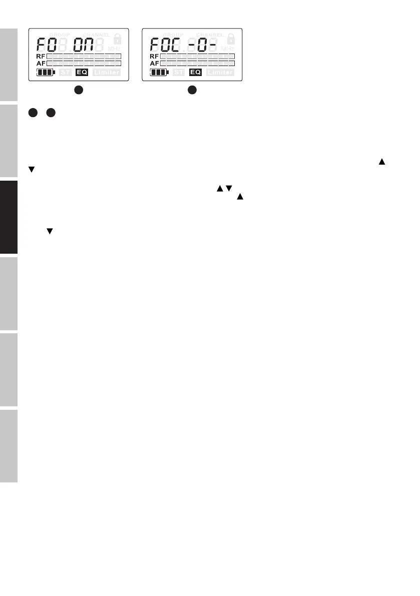 l’écoute le signal audio arrivant sur l’entrée droite (INPUT RIGHT) de l’émetteur. Pour la valeur FOC -0-, les deux signaux d’entrée de l’émetteur sont