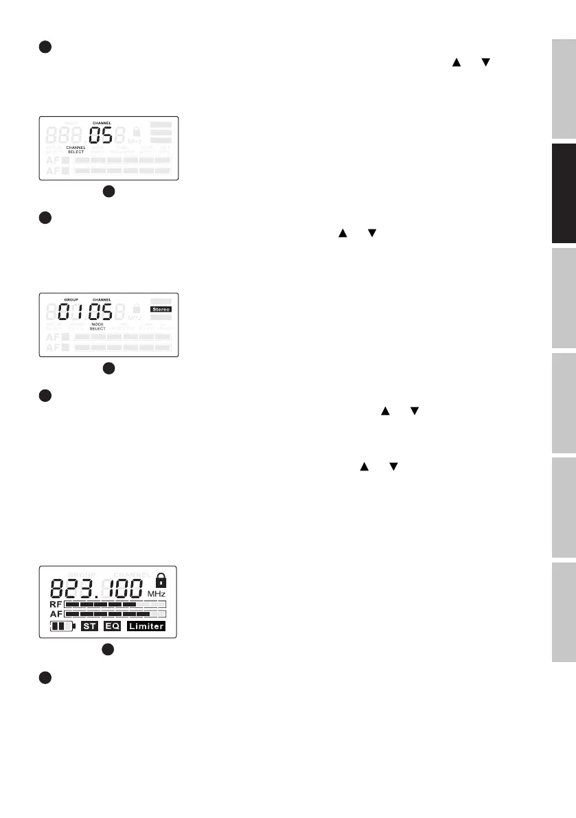 Drücken Sie nun wiederholt die SET-Taste bis „CHANNEL SELECT“ im Display erscheint. Drücken Sie nun die Tasten bzw. um den