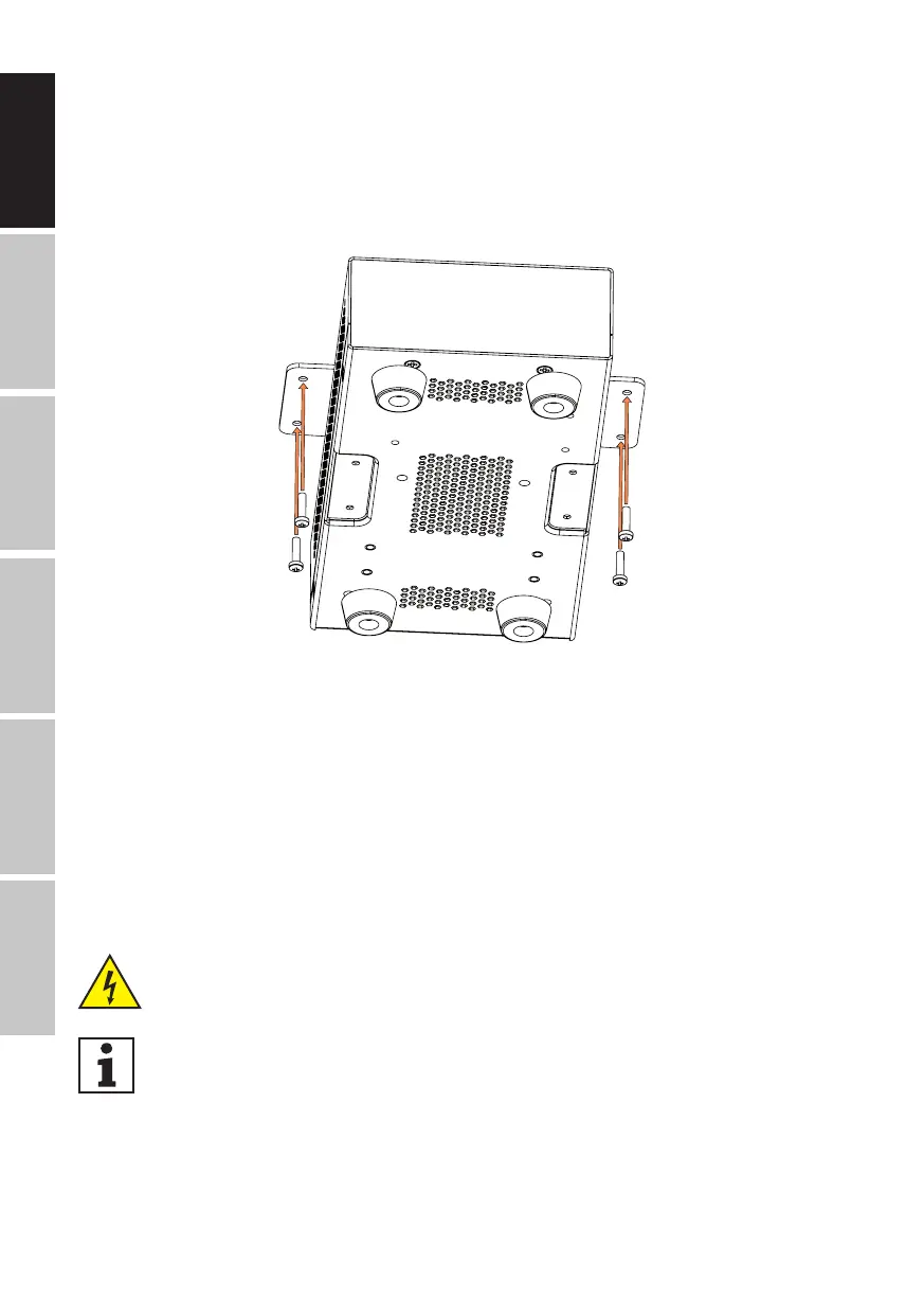 position (see illustration, mounting screws not included). For tabletop mounting, the four rubber feet