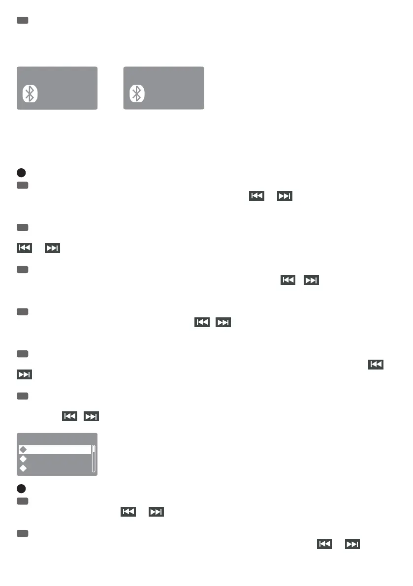player is in Bluetooth mode, and use the and buttons to select the "Recently reconnection" (light background) menu item and confirm