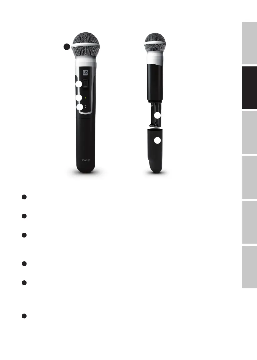 Der Mikrofonkopf ist austauschbar, der Handsender ist kompatibel mit den optional erhältlichen Mikrofonköpfen der LD U500® Serie.
