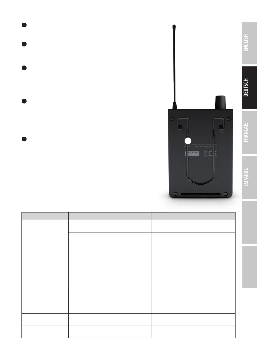 Auf der Rückseite des Taschenempfängers bendet sich ein Gürtelclip, mit dessen Hil-