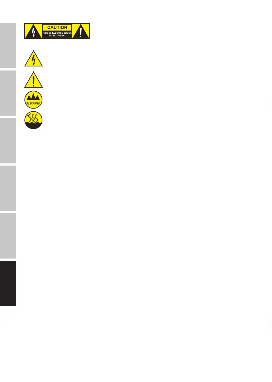 Avvertimento! Questo dispositivo è destinato per l’utilizzo a un’altitudine non superiore ai 2.000metri sul livello del mare.
