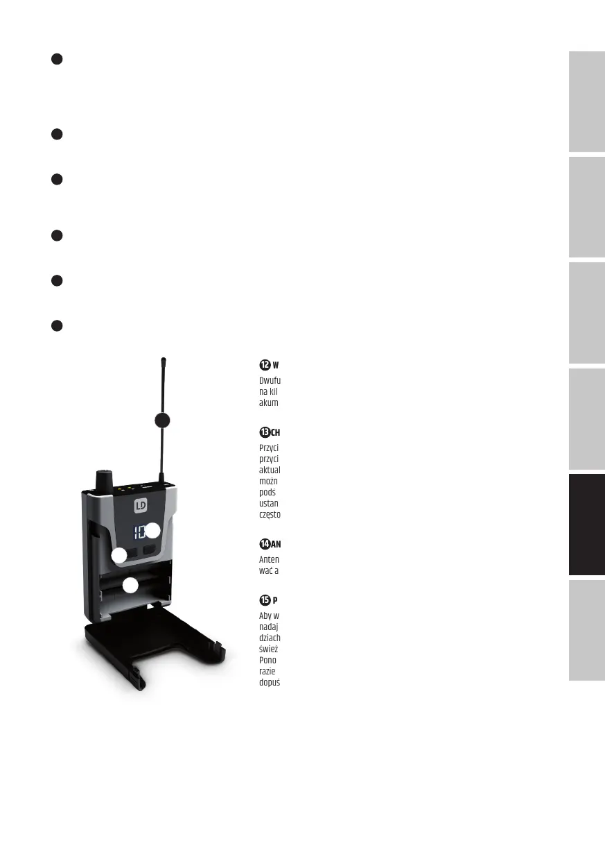 MONO: Sygnały audio są wewnętrznie sumowanymi sygnałami mono przesyłanymi do kieszonkowego odbiornika.