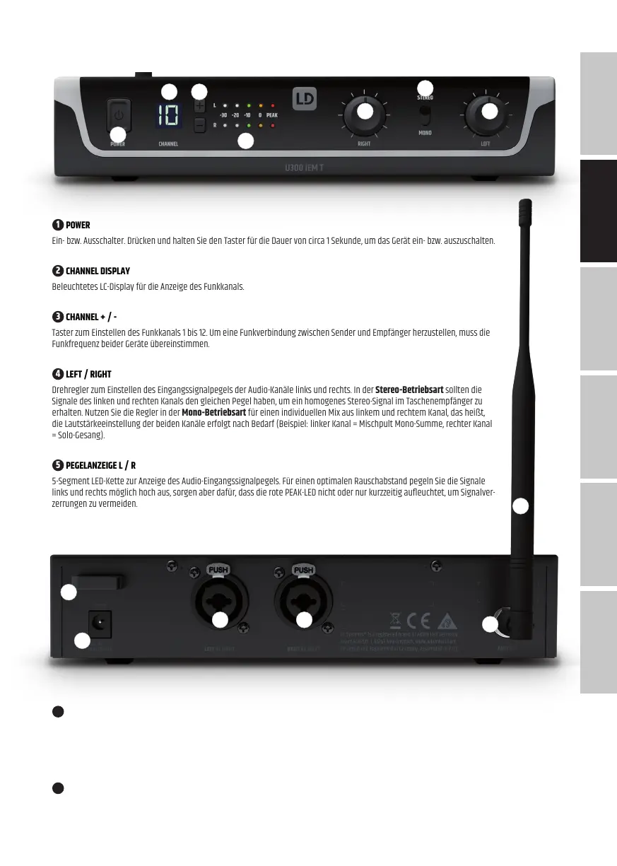 Bekijk gratis de handleiding van LD Systems U306 IEM, stel vragen en lees de antwoorden op veelvoorkomende problemen, of gebruik onze assistent om sneller informatie in de handleiding te vinden of uitleg te krijgen over specifieke functies.