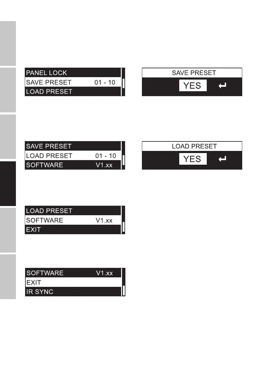 SAVE PRESET (marcada en color claro). Púlselo de nuevo para conrmar. Ahora, gire el mando giratorio para seleccionar el número de preset que qui-