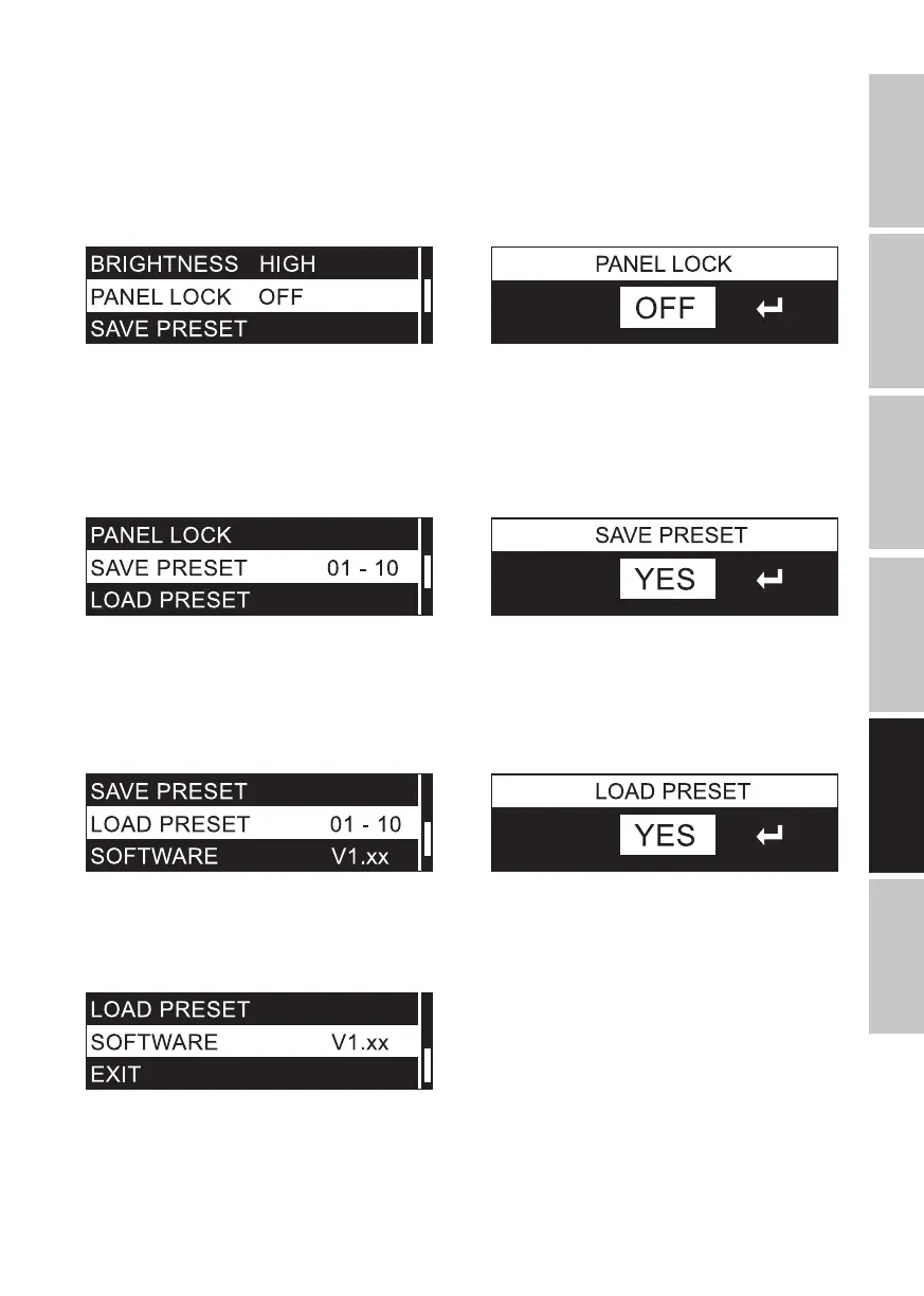pozycję menu SAVE PRESET (podświetloną) i nacisnąć pokrętło w celu potwierdzenia. Należy wybrać numer zestawu ustawień wstępnych, które mają