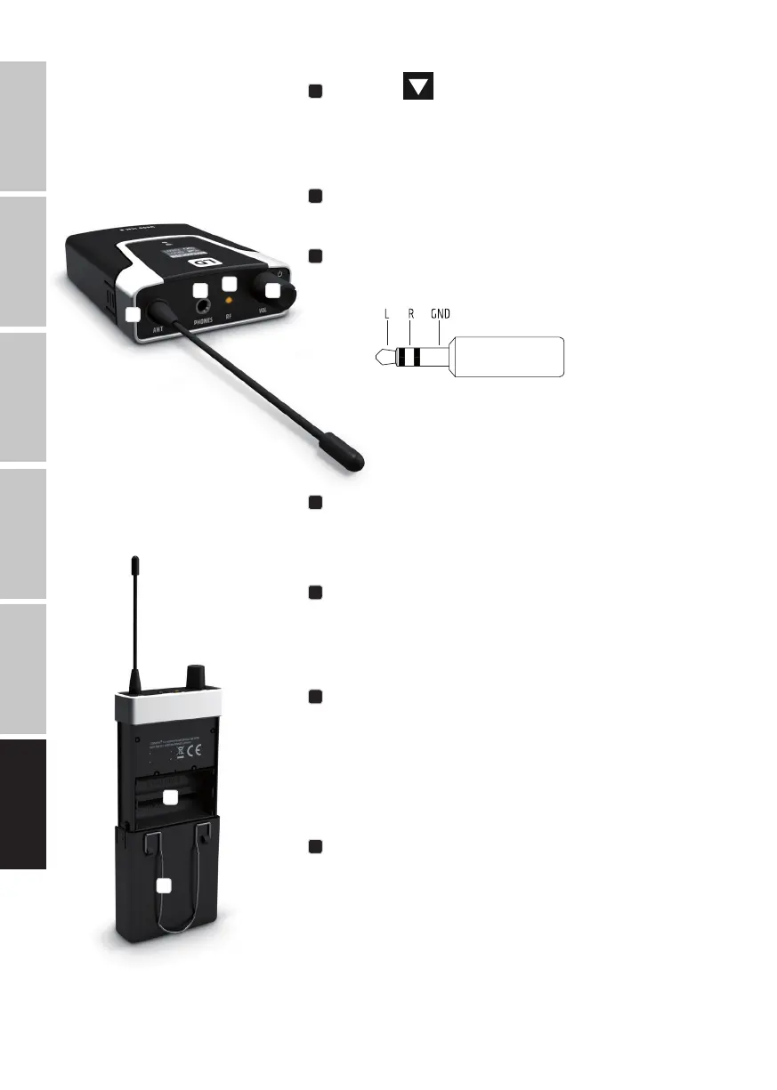Sul retro del ricevitore portatile si trova una clip da cintura che consente di ssare il ricevi-