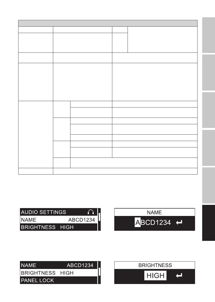 AUDIO SETTINGS (Modica valore = ruotare encoder, conferma modica valore = premere encoder)