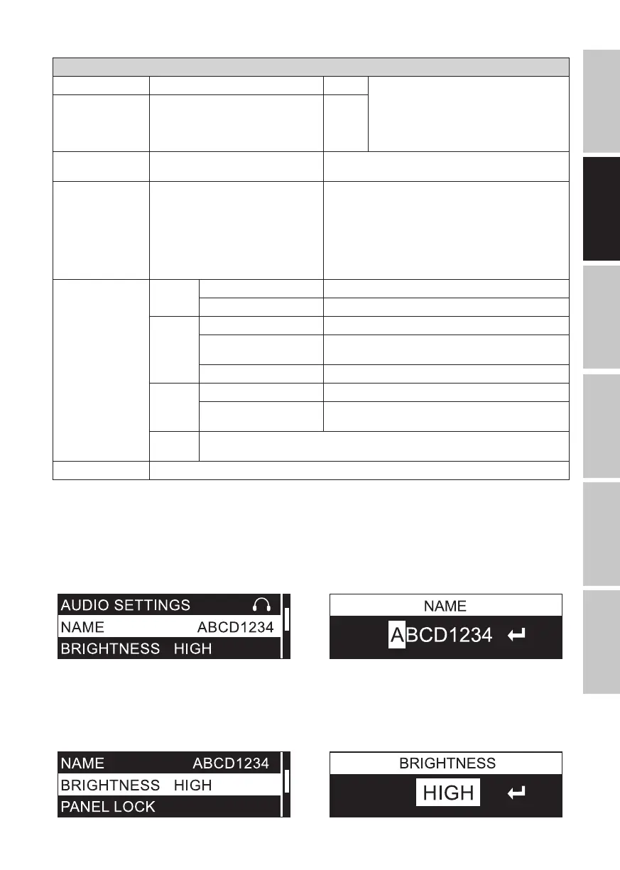 AUDIO SETTINGS (Wert ändern = Encoder drehen, Wertänderung bestätigen = Encoder drücken)