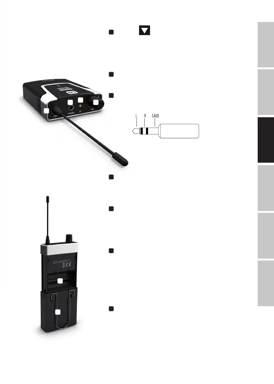 Le récepteur de poche est équipé à l’arrière d’un clip de ceinture permettant de le xer à la