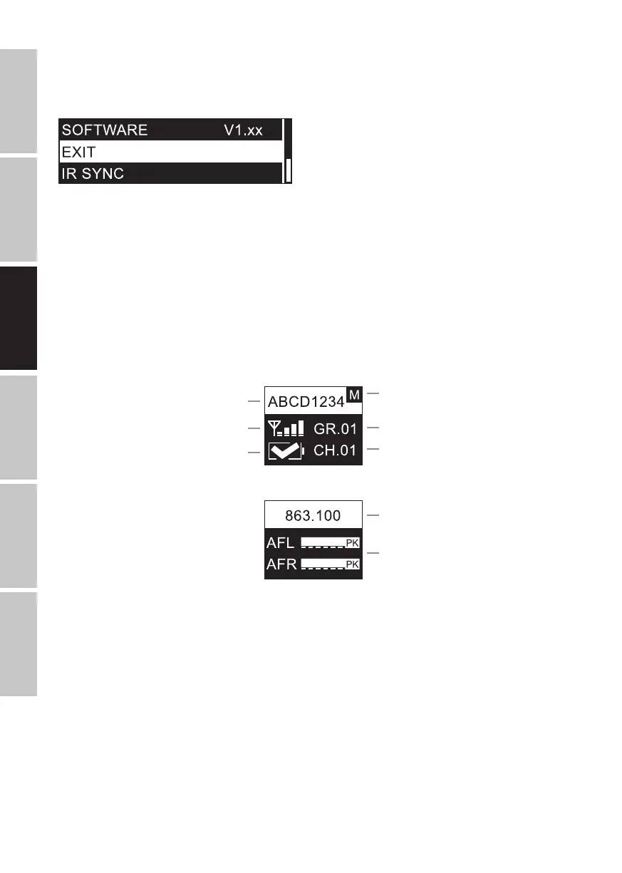 Peu après la mise sous tension du récepteur de poche, l’afchage principal A indique les informations suivantes: Nom d’utilisateur personnalisé,