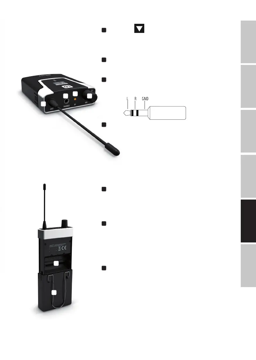 Z tyłu odbiornika kieszonkowego znajduje się klips na pasek. Umożliwia on przypięcie