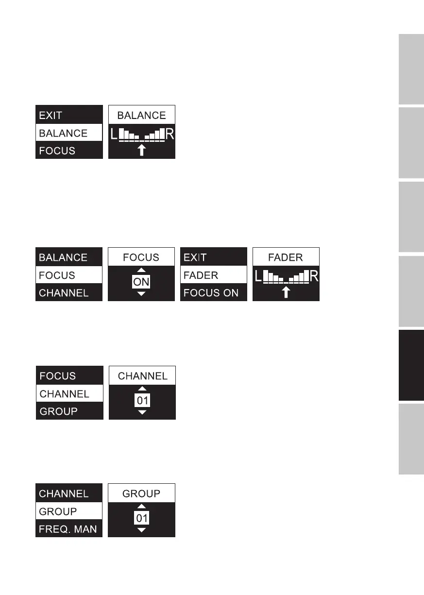 odbiorniku kieszonkowym (wyłączenie trybu FOCUS za pomocą opcji FOCUS OFF). W odbiorniku balans między lewym i prawym kanałem może być