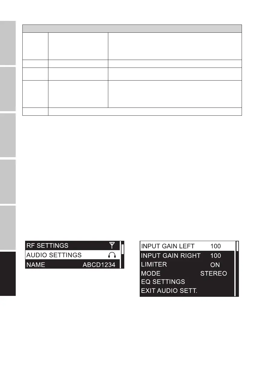 RF SETTINGS (Modica valore = ruotare encoder, conferma modica valore = premere encoder)