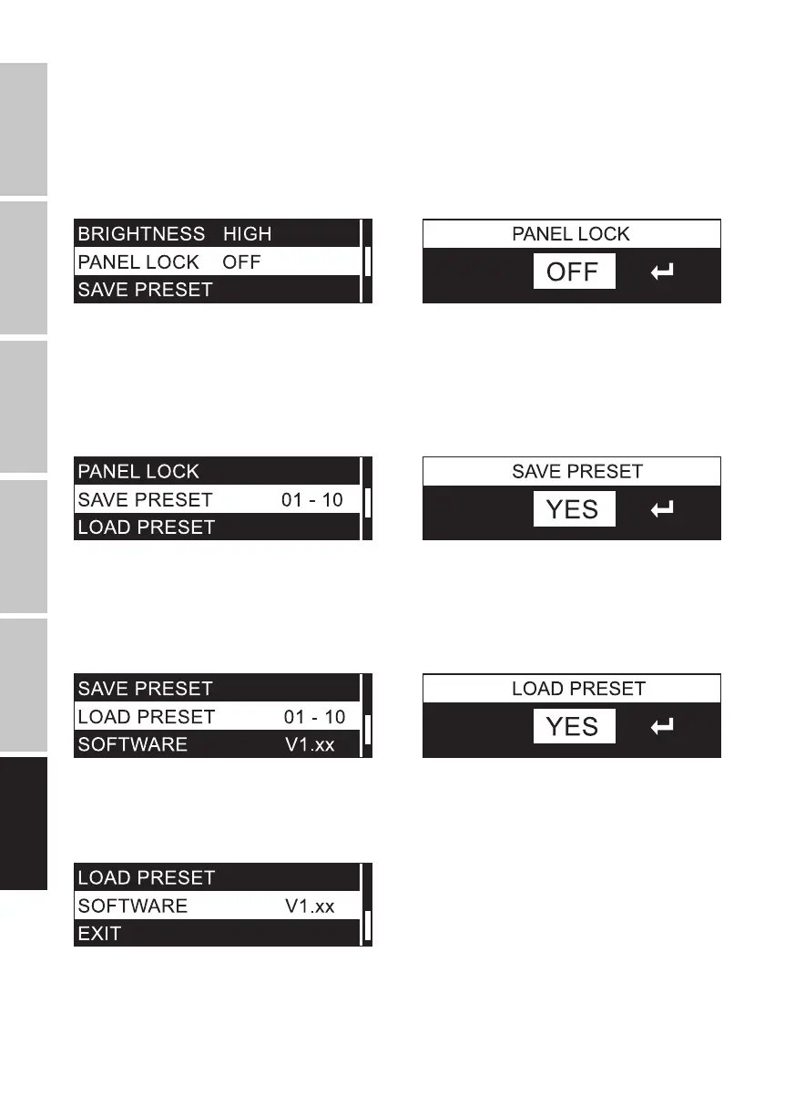 di menu LOAD PRESET (sfondo chiaro), quindi premere l'encoder per confermare. Selezionare il numero di preset che si desidera caricare (01 - 10)