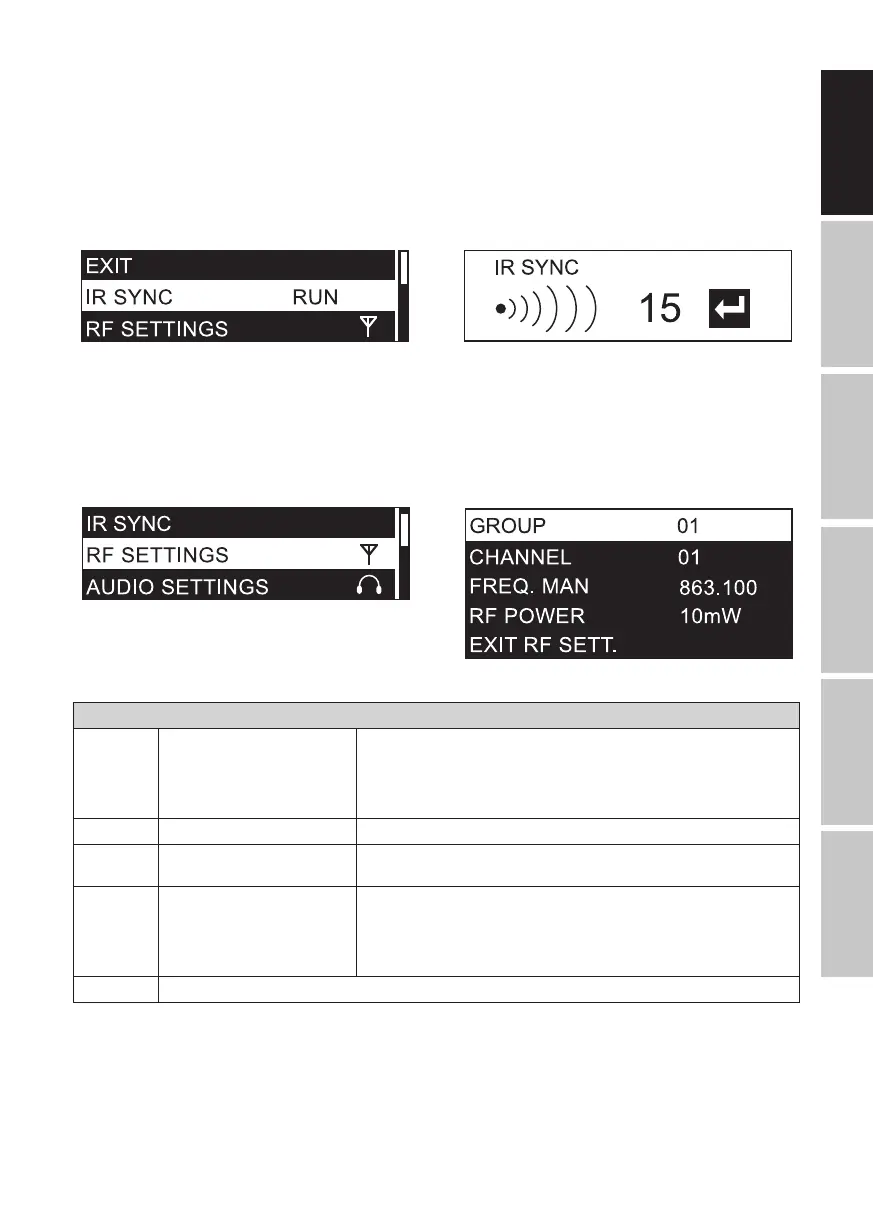 RF SETTINGS (change value = turn encoder, conrm value change = press encoder)