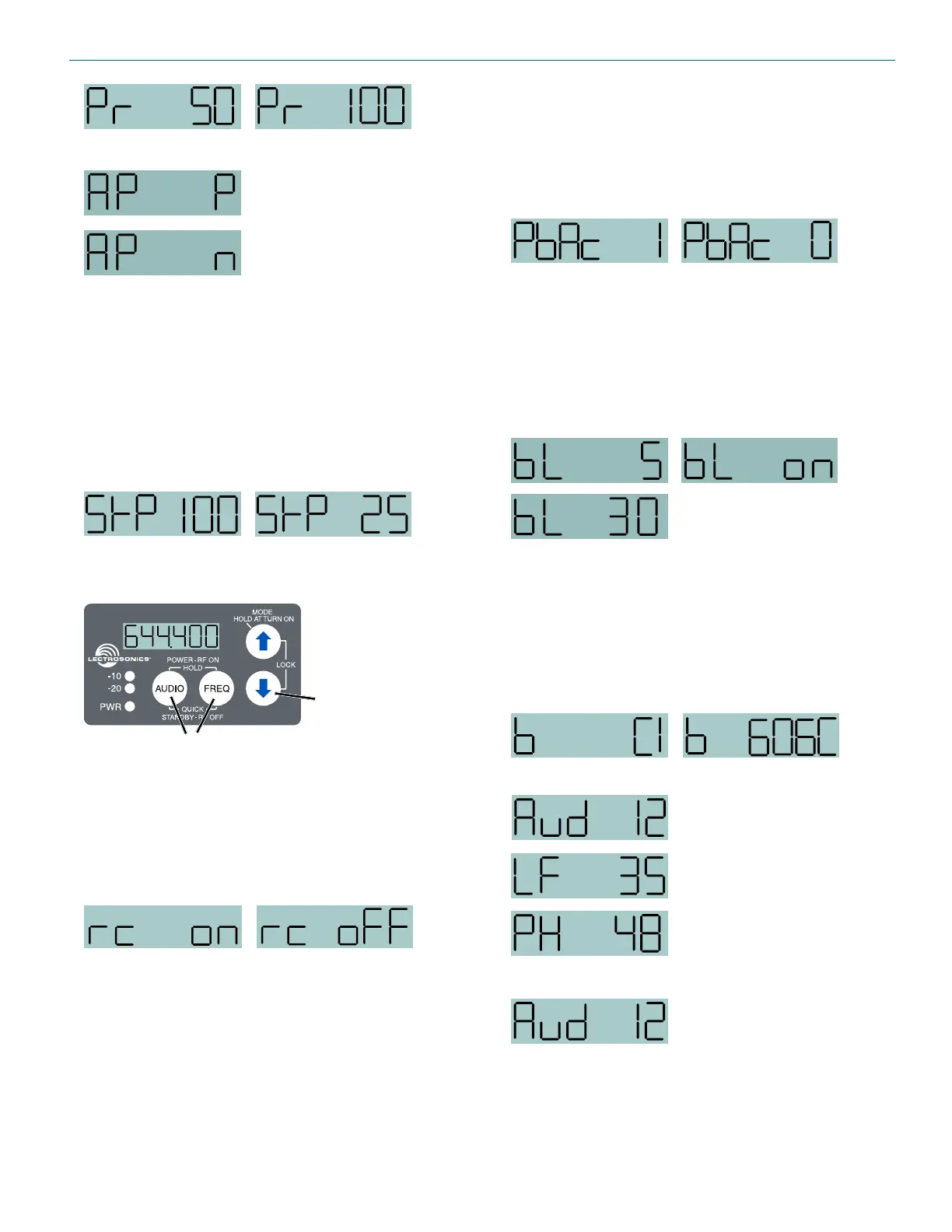 Band/Legacy Block 606 Setting (Down Button Menu)