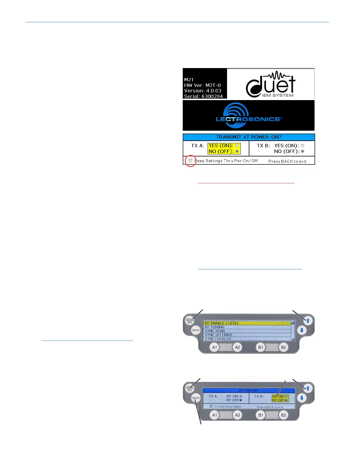 Simultaneous long press of A1/A2 (TX A) or B1/B2 (TX B)