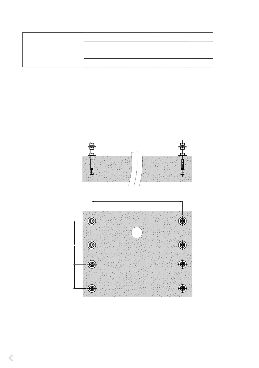 1. Drill a hole in the concrete for the anchor bolts. For more information see the anchor bolt instruc-