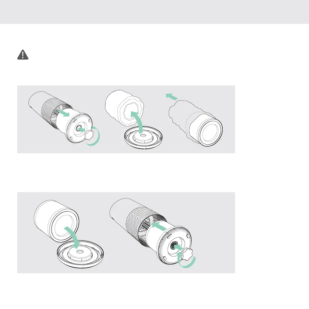 Dévissez le couvercle inférieur et retirez l’emballage plastique du filtre.