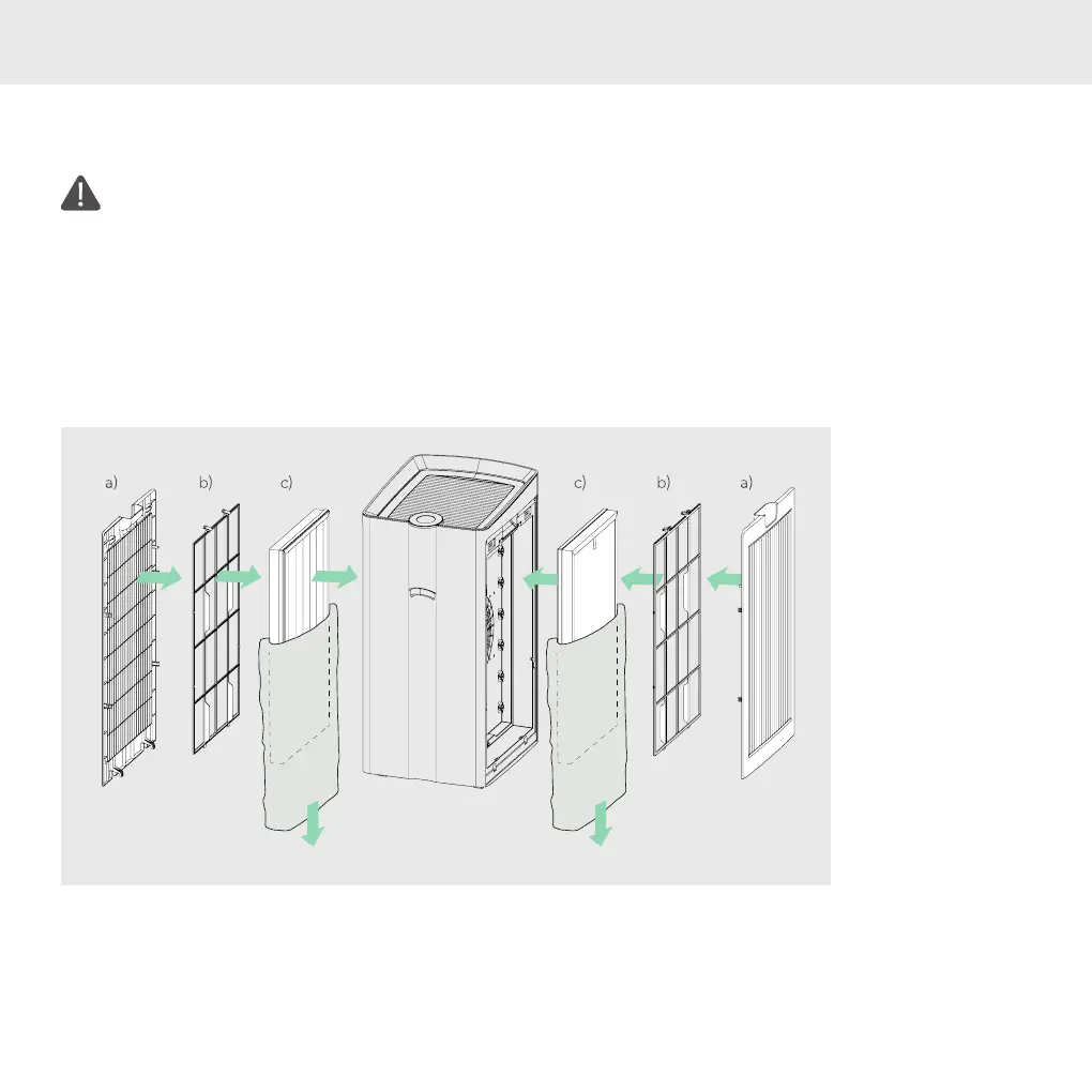 de zak. Verwijder de plastic zak van het filter (c) en installeer deze in de luchtreiniger met de HEPA-