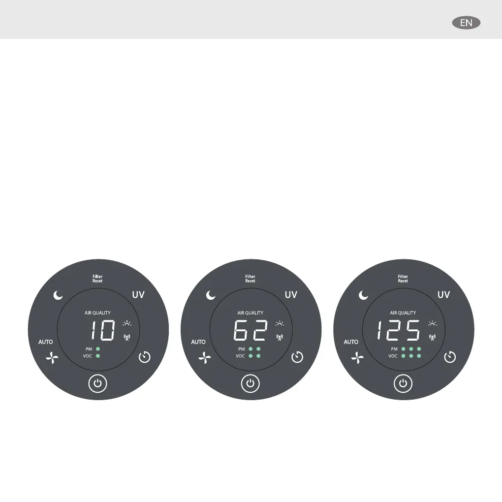 In AUTO mode, the purifier automatically adjusts the fan speed in response to