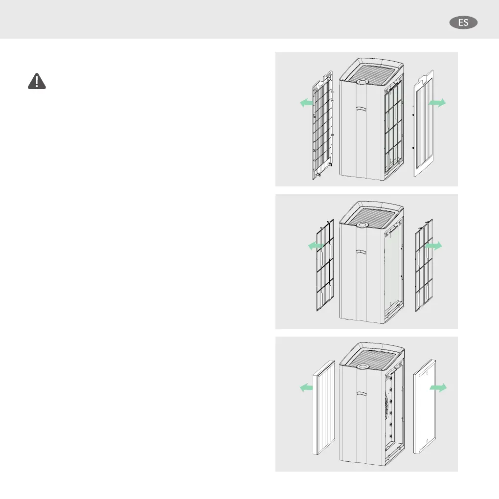 1. Extraiga con cuidado los prefiltros lavables de ambos