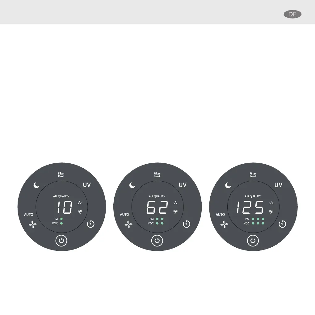 Die beleuchtete, farbcodierte Anzeige gibt an, ob die Luqualität gut, mäßig oder