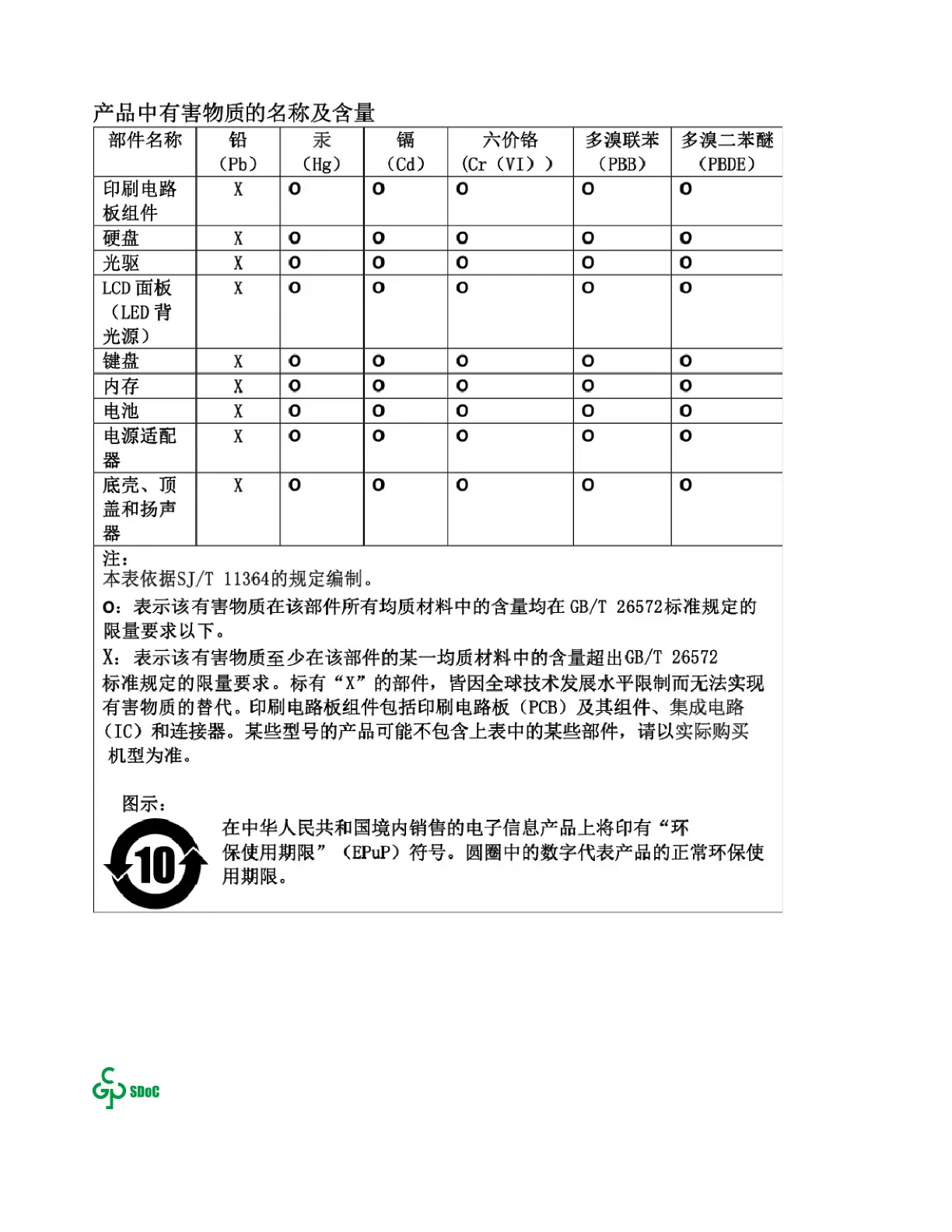 相关要求,联想公司 针对纳入《电器电子产品有害物质限制使用达标管理目录》内的产品,使用自我声 明的
