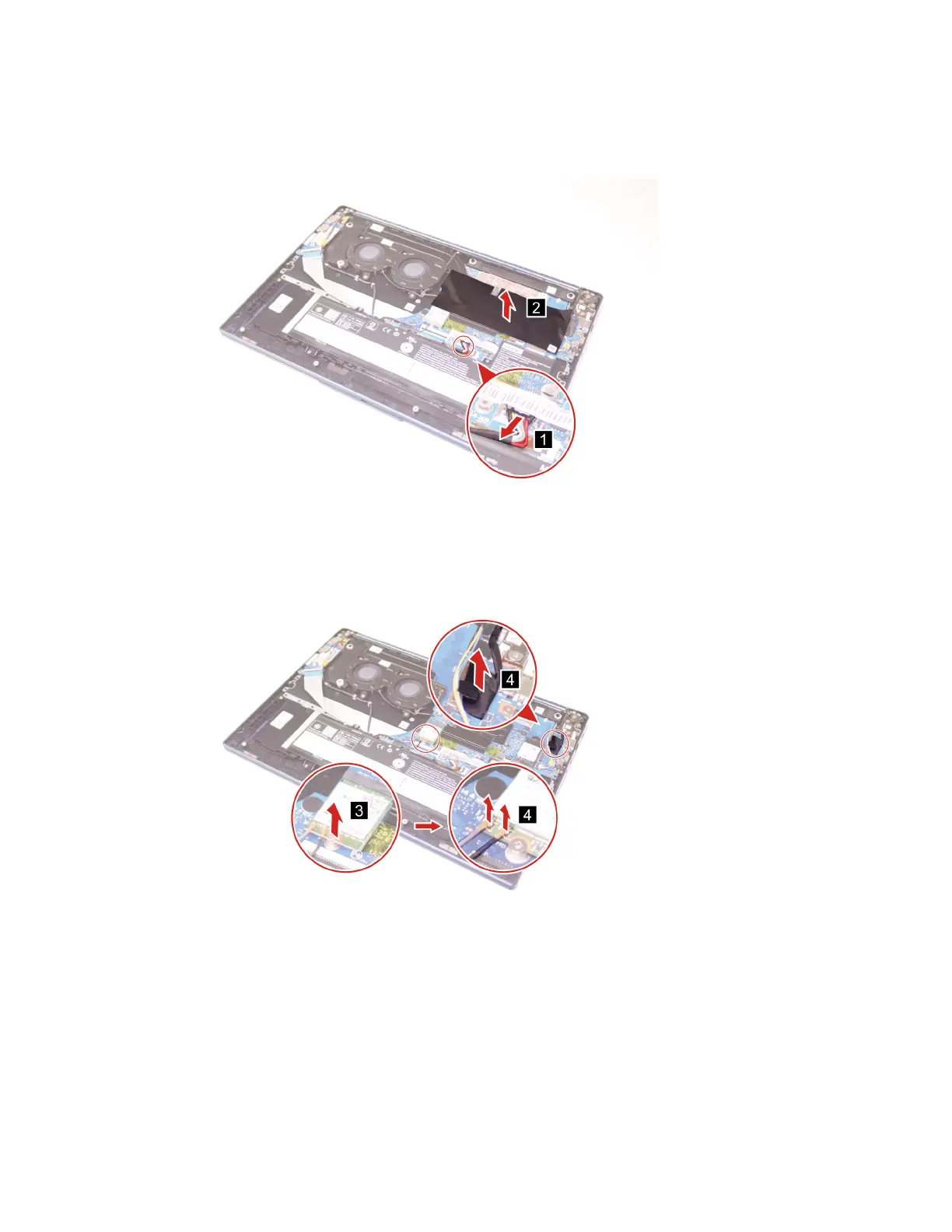 Step 1. Disconnect the battery pack cable from the system board. Then, peel off the system board mylar.