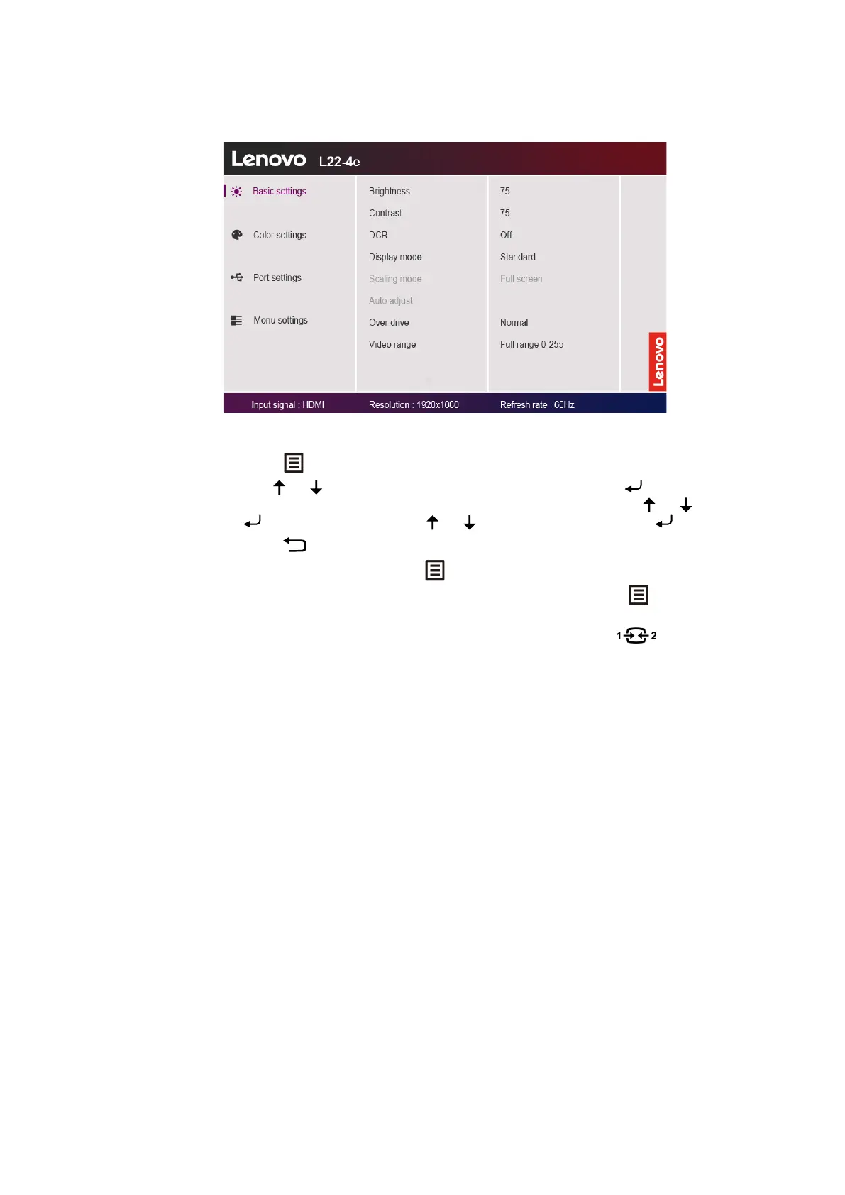 The settings adjustable with the user controls are viewed through the On-Screen Display (OSD),