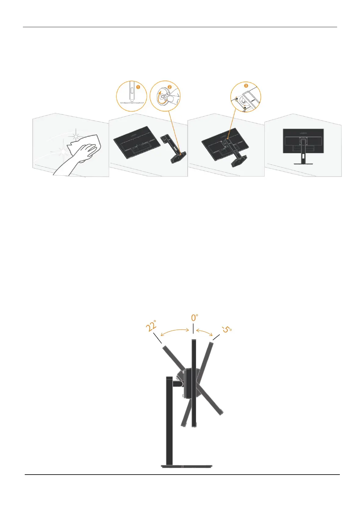 3. Align the VESA hole on the support assembly with the VESA hole on the back of the monitor, and then
