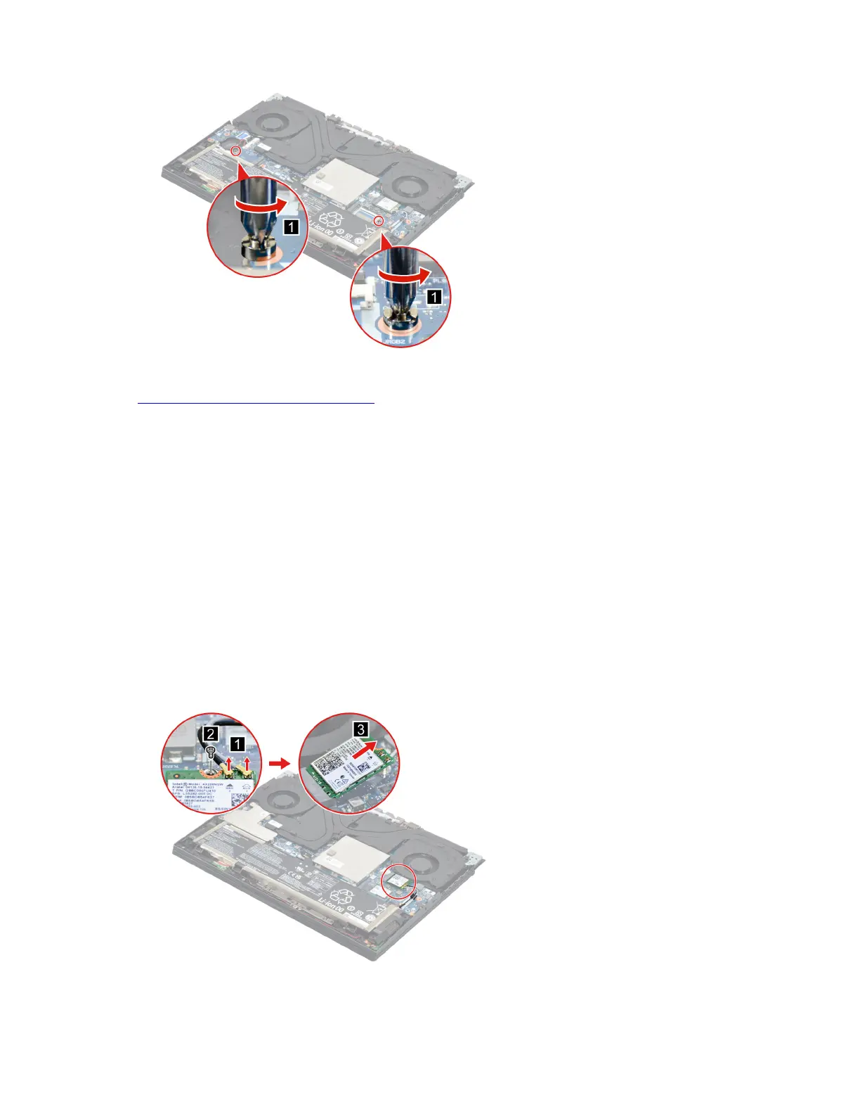 Step 3. Detach the main and auxiliary antenna cable connectors. Remove one screw and then remove the