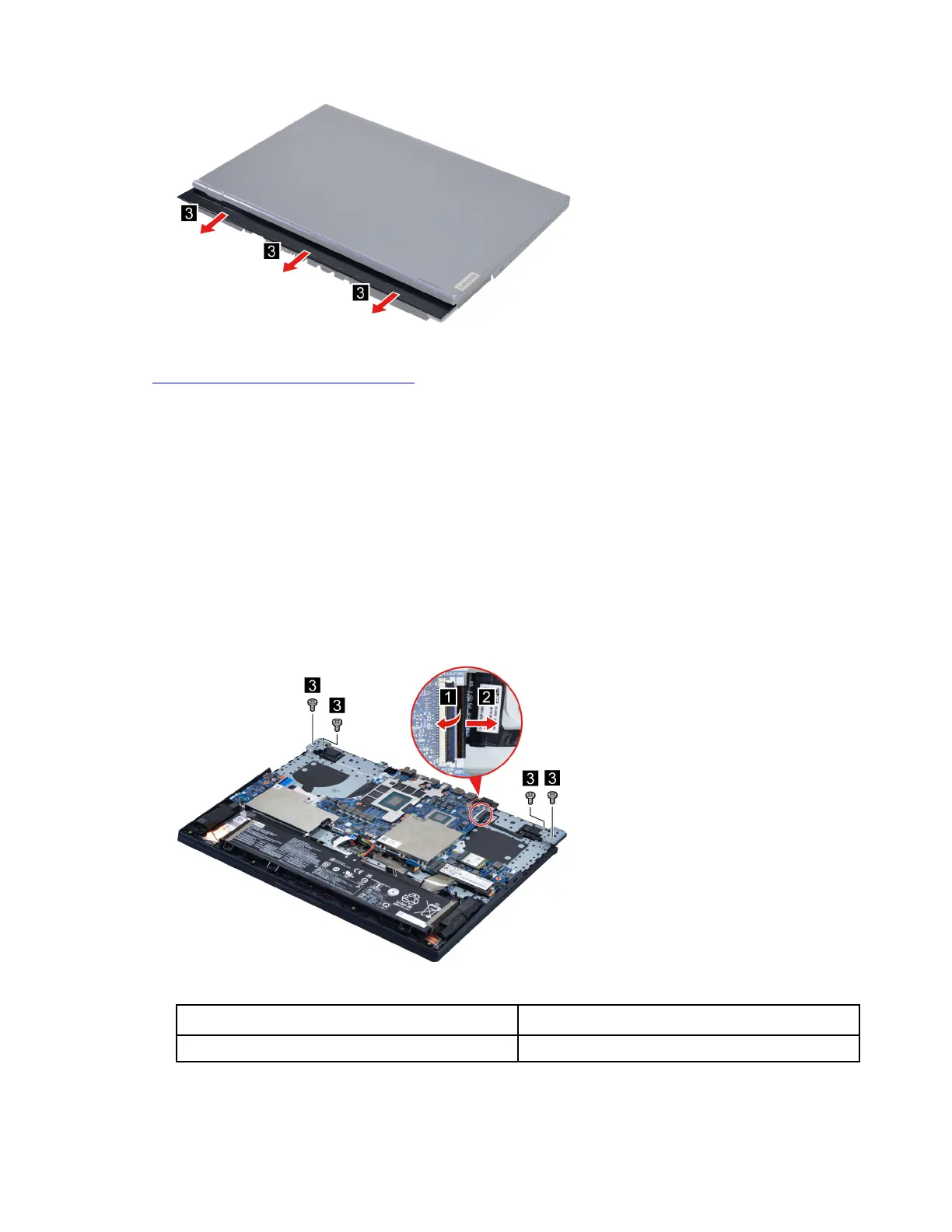 Step 1. Disconnect the EDP cable from the system board and then remove four screws.