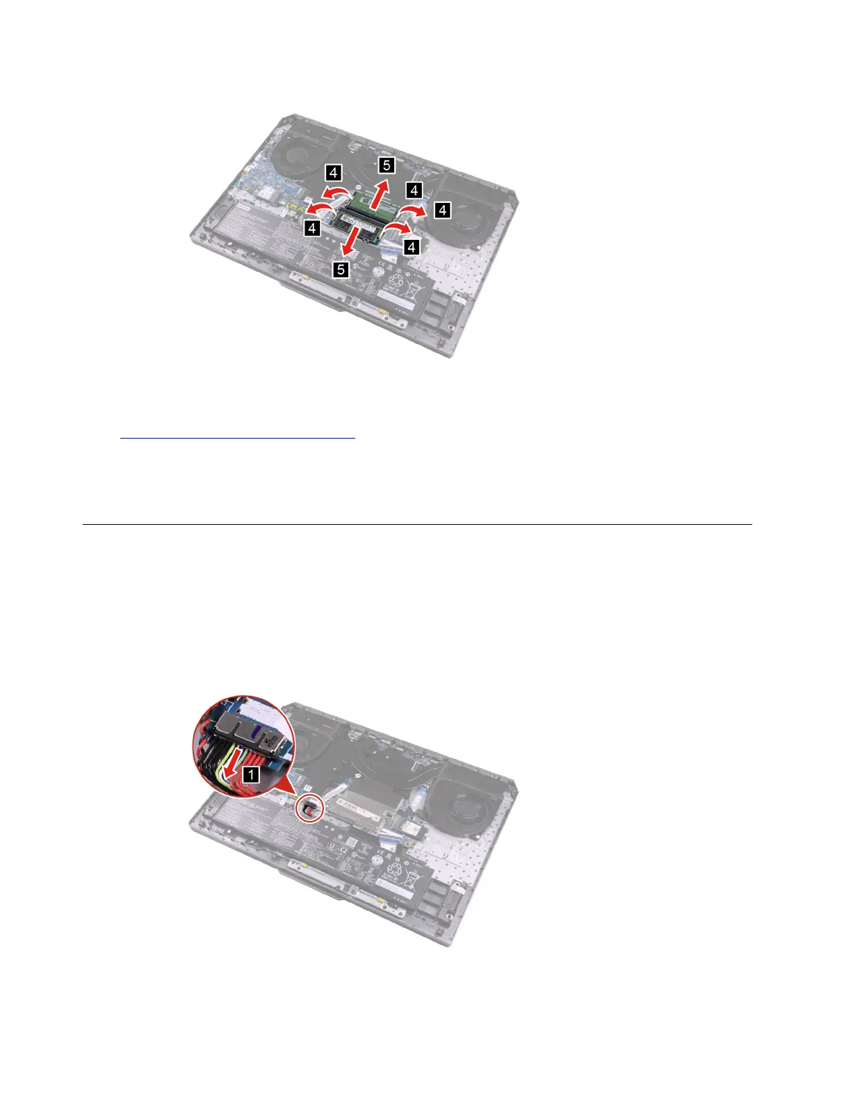 Step 1. Disconnect the battery pack cable from the system board (1).